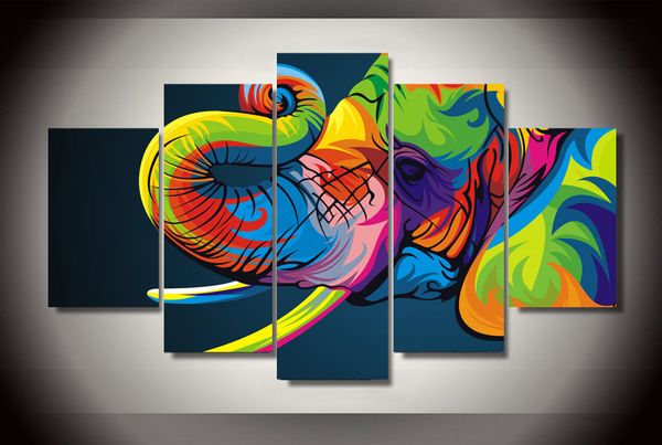 Article colorful elephant oil painting,