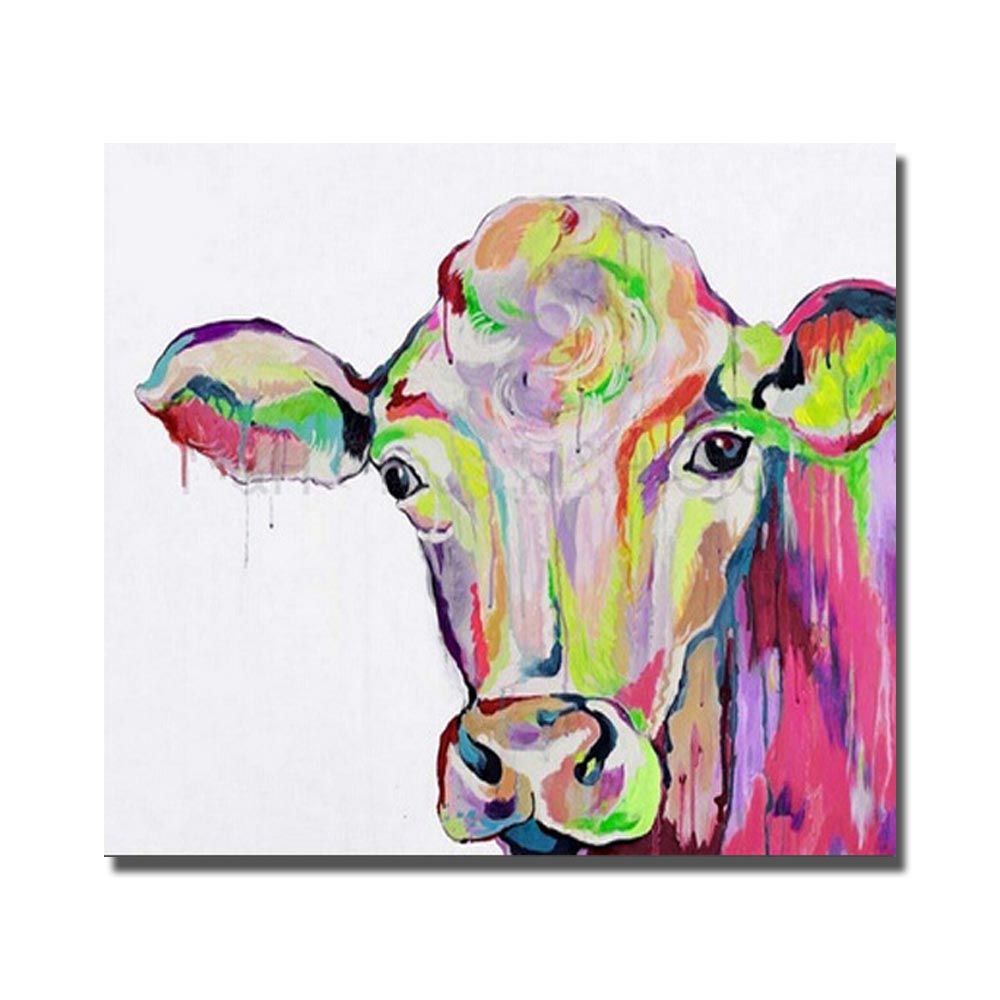 Article colorful cow painting on canvas,
