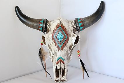 Article aztec cow skull painting,